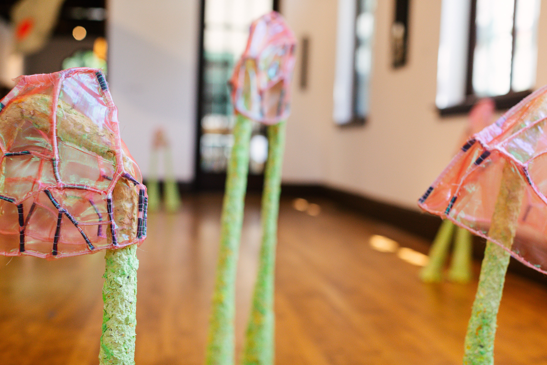 Organza, plastic corset boning, painters' tape, thread, glue, and paper donated to the Athenaum.